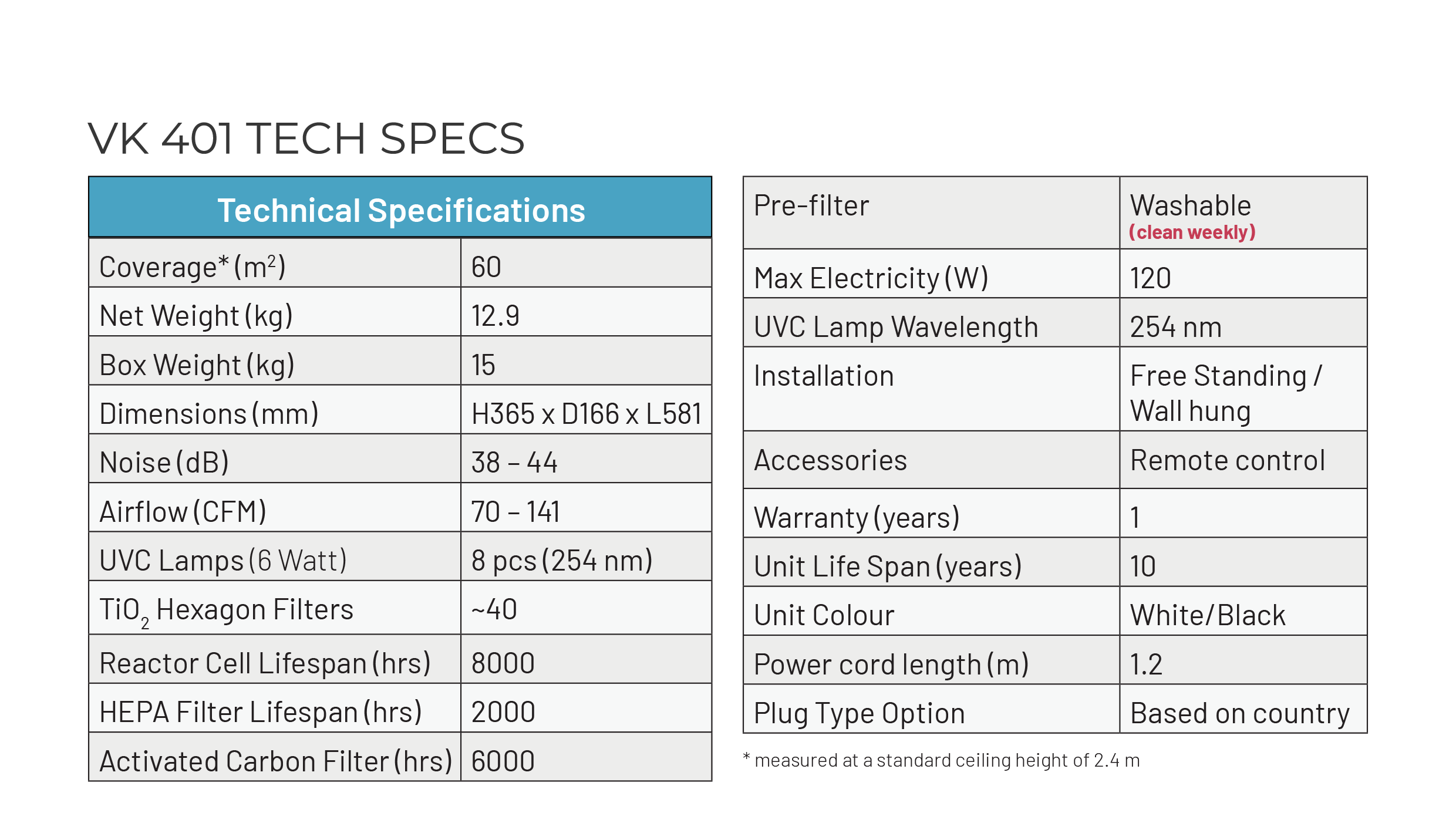 • Control airflow to optimise sterilisation in the breathing space • Deactivates viruses and bacteria with unequalled efficiency • Effectively remove noxious gases and larger particles such as dust, dander and other allergens VK 401 is the ideal unit of air steriliser for smaller commercial spaces such as medical and dental surgeries, offices, care homes, classrooms, government buildings, single patient rooms, waiting rooms, childcare facilities, leisure facilities etc… ![]() Radic8 VK401 Specification