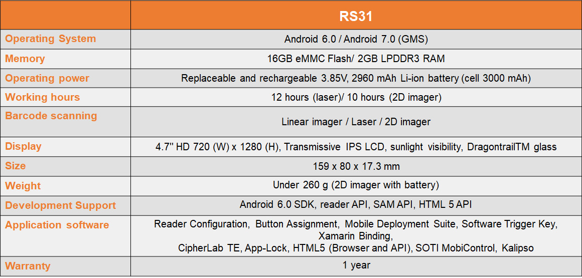 • CipherLab RS31 Series Specification