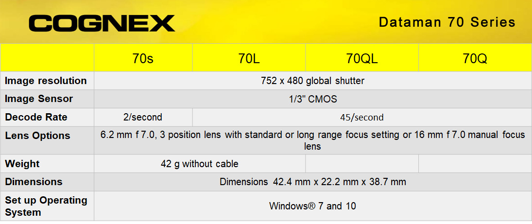 • With advanced image formation and a small footprint, DataMan 70 is the ideal