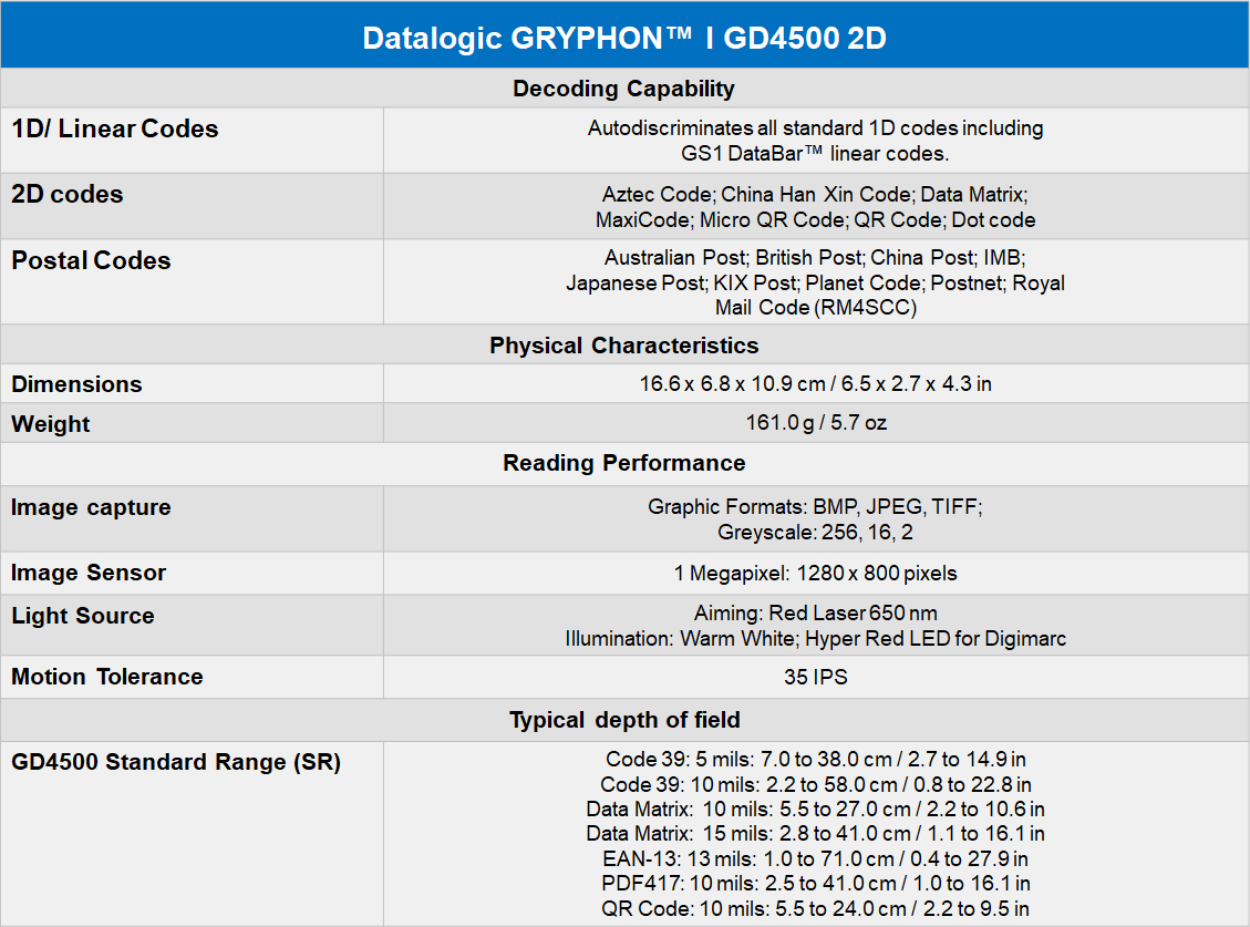 • DataLogic Gryphon ™ GD4500 Specification