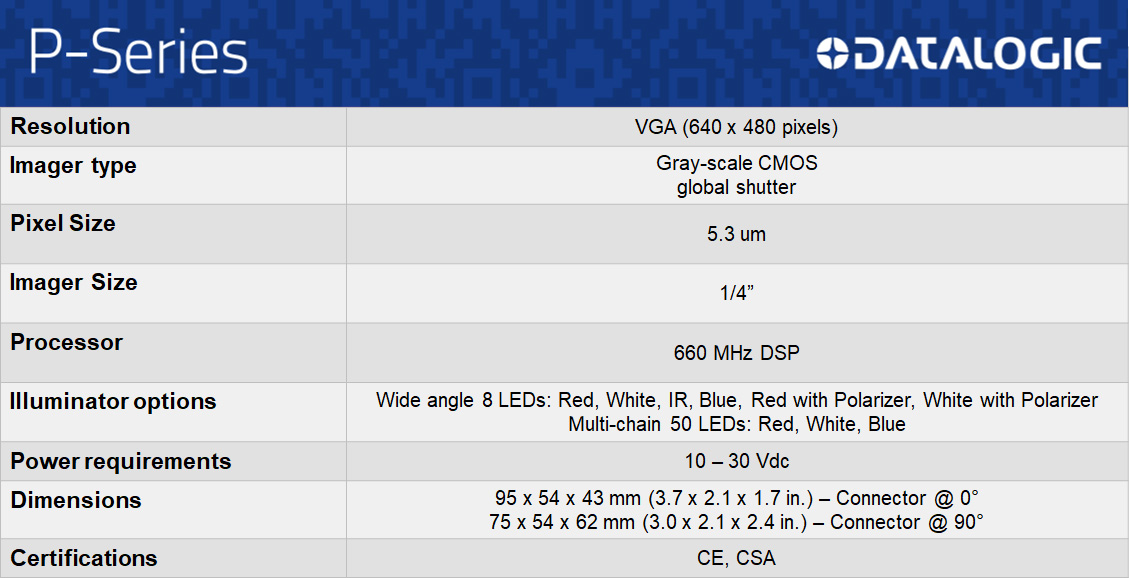 • The P-Series is an ultra-compact cost effective smart camera offering advanced