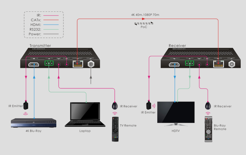 from your HDMI source device to a 4K display remotely located 230 feet away.