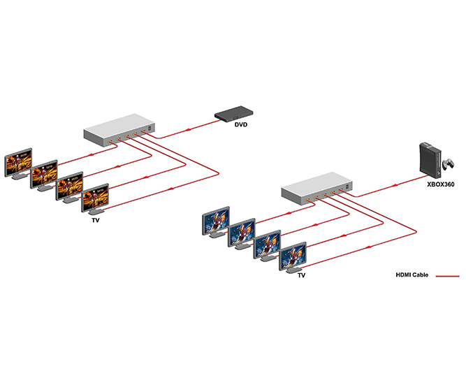 • Distribute high-resolution HDMI signals to four Ultra HD displays