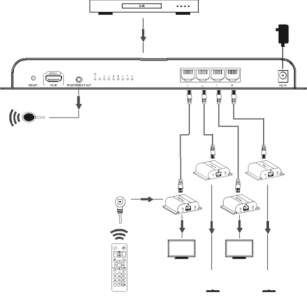 KanexPro HDMI® 1x4 Distribution Amplifier over CAT5e/6 Outputs