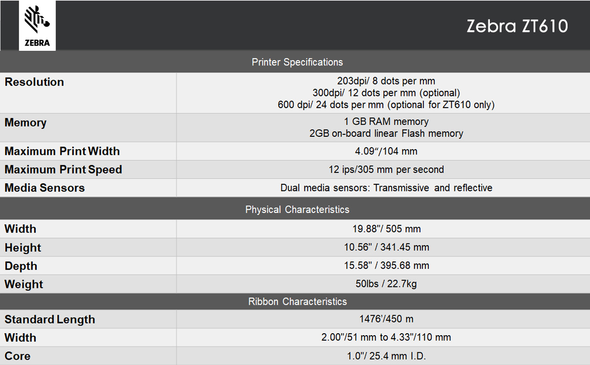 • The ZT600 series printers are built to withstand the most demanding industrial
